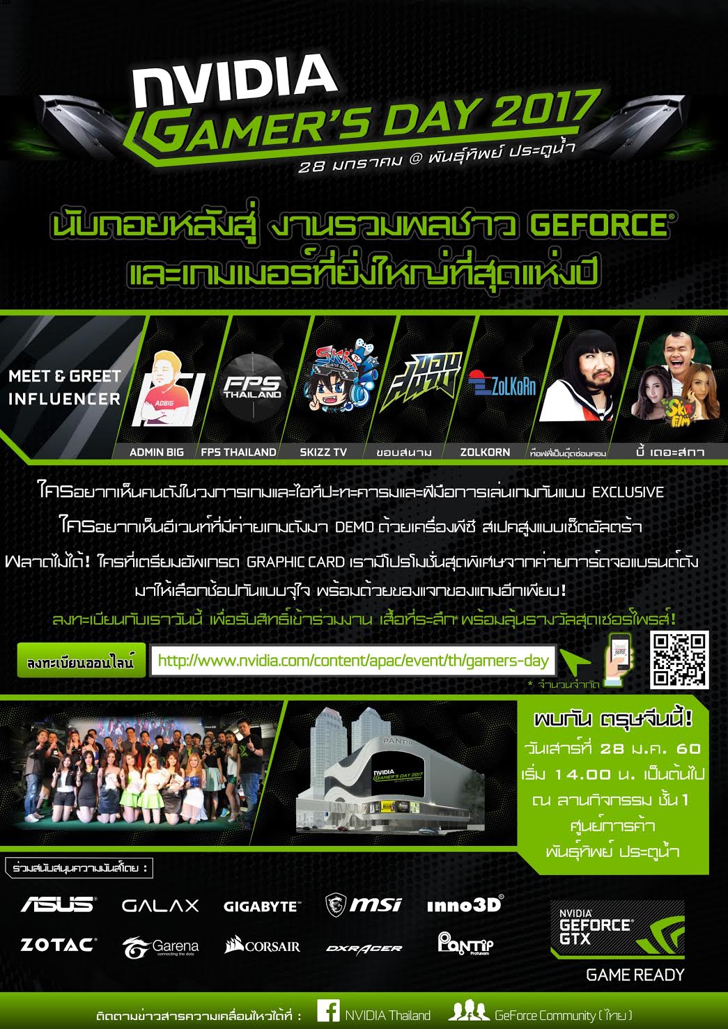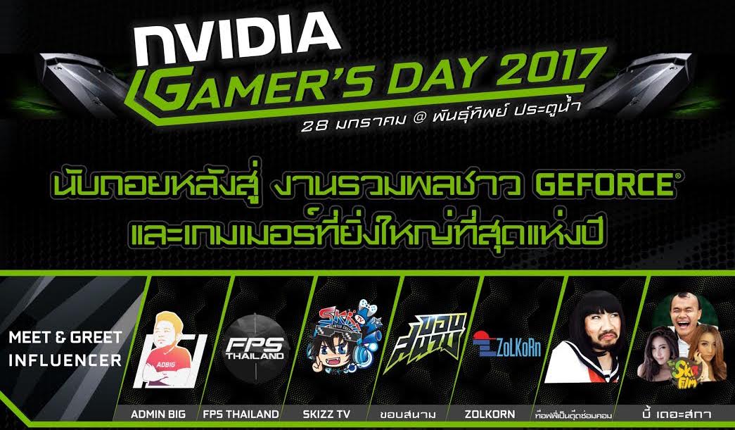 ขอเชิญชวนร่วมงานรวมพลชาว GeForce® และเกมเมอร์ที่ยิ่งใหญ่ที่สุดในประเทศไทยกับงาน NVIDIA GAMER’S DAY 2017 พบกัน ตรุษจีนนี้ !! 28 มกราคม 2560 @ พันธุ์ทิพย์ ประตูน้ำ