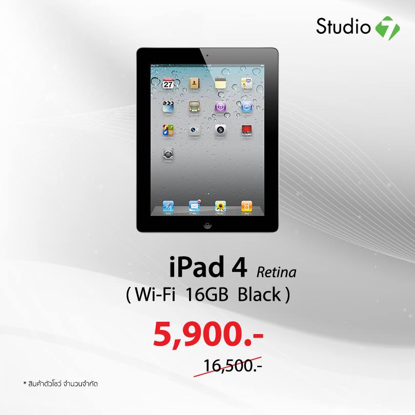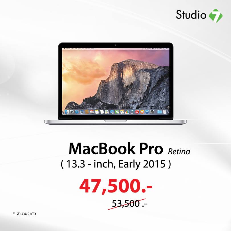 ลดถล่มทลาย งาน Clearance Sale ที่ Studio 7 สาขาเซ็นทรัลพลาซ่า พระราม 2 พบกับผลิตภัณฑ์สินค้า Apple ในราคาสุดคุ้มที่ใครๆ ก็เป็นเจ้าของได้ง่ายๆ พบกับสินค้าอื่นๆ ที่ร่วมรายการอีกมากมายที่ Studio 7 สาขาเซ็นทรัลพลาซ่า พระราม2 ตั้งแต่วันนี้ – 31 มกราคม 2560 โดยสินค้าไฮไลท์ก็มีทั้ง iPhone 6 (ตัวโชว์) ความจุ 16GB สีดำเหลือ 9500 บาท ,iPad 4 (ตัวโชว์) รุ่น Wi-Fi ความจุ 16GB สีดำเหลือ 5,900 บาท และ MacBook Pro Retina 13.3 นิ้วปี 2015 ลดราคาจาก 53,500 บาทเหลือ 47,500 บาท