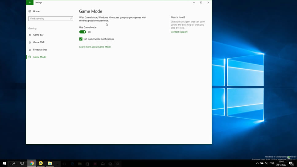Microsoft พร้อมให้ผู้ใช้งาน Windows 10 Insider Preview ได้ลองใช้ฟีเจอร์ Game Mode แล้ว ซึ่งพัฒนาออกมาเอาใจเกมเมอร์โดยเฉพาะ ช่วยรีดประสิทธิภาพฮาร์ดแวร์ให้ตอบสนองการเล่นเกมได้ดีขึ้น แต่ความจริงแล้วเป็นการปิดการใช้ทรัพยากรที่ไม่จำเป็นออกไป เพื่อไม่ให้รบกวนการประมวลผลของเกม ทำให้การแสดงกราฟิกราบรื่นยิ่งขึ้น
