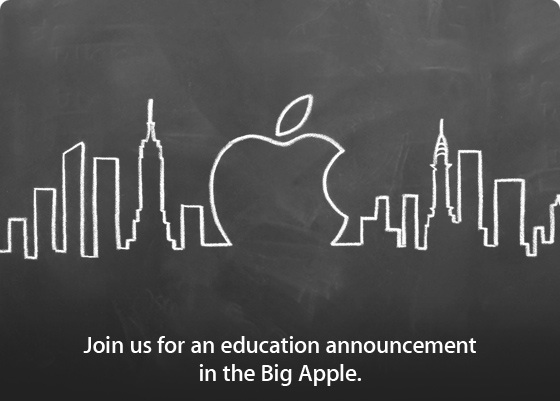 Apple ส่งจดหมายเชิญนักข่าวและสื่อมวลชน กับอีเว้นแรกของปี 2012 โดยมีรูปภาพบนกระดานดำ และมีข้อความด้านล่างว่า “Join us for an educatio annoucement in the Big Apple.” ซึ่งคาดว่าจะเป็นการเปิดตัวสินค้าที่เกี่ยวกับการศึกษาอย่าง Digital Textbook งานจัดขึ้นที่ พิพิธภัณฑ์ Guggenheim ในเมือง New York วันทีี่ 19 มกราคม 2012 นี้