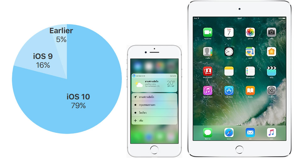 เผยสัดส่วนผู้ใช้ iOS 10 เกือบถึง 80% ขณะที่สัดส่วนผู้ใช้ Android Nougat มีเพียง 1.2%