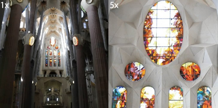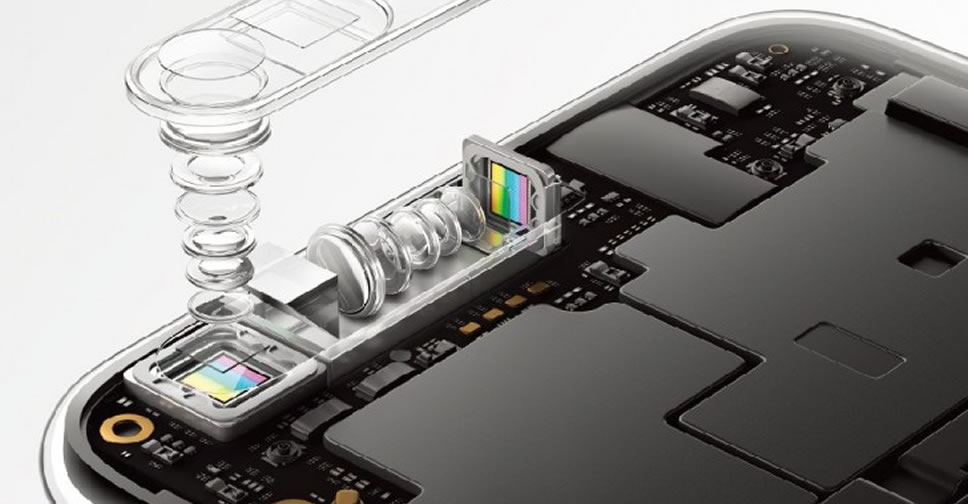 ระบบ 5x Dual Camera Zoom ประกอบไปด้วยส่วนประกอบต่างๆ นับ 50 ชิ้น วางเรียงซ้อนกัน และติดตั้ง Periscope ลงไปเพื่อให้แสงถูกหักเหผ่าน Prism ตรงไปยังเลนส์เทเลโฟโต้ ที่วางซ้อนอยู่ภายใน โดยทำมุม 90 องศากับเลนส์มุมกว้าง