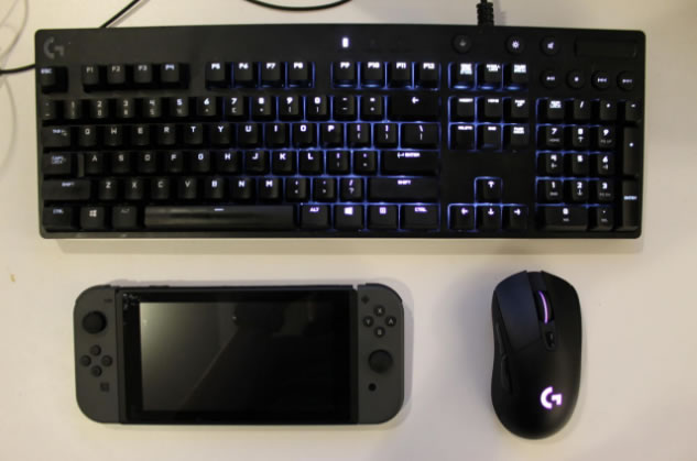 Nintendo Switch กับแผงคีย์บอร์ด Logitech G610 Orion และเม้าส์ไร้สาย Logitech G403