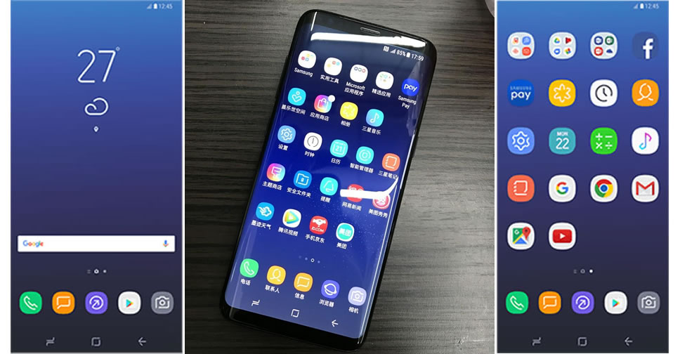 เปรียบเทียบ UX ระหว่าง Galaxy S8 (ซ้าย) Galaxy S7 Nougat (กลาง) และ Galaxy S7 Marshmallow (ขวา)