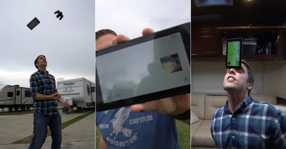 สำหรับการทดสอบล่าสุดของ GizmoSlip ได้เพิ่มความสนุกมากขึ้น โดยได้รับความร่วมมือจากเพื่อนที่มีความสามารถพิเศษในการเล่น Juggling หรือการโยนวัตถุมากกว่า 3 ชิ้น แล้วสลับกันรับด้วยมือทั้ง 2 ข้าง นั่นทำให้เราเห็น Nintendo Switch ถูกทดสอบด้วยวิธีการที่สนุก มากกว่าการทิ้งอุปกรณ์ลงมาบนพื้น