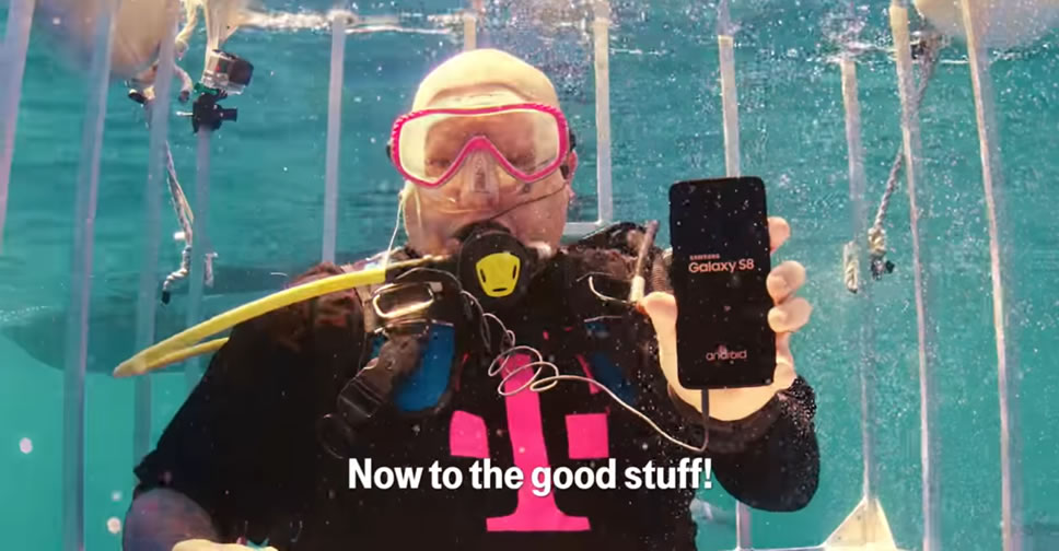 T-Mobile เริ่มเปิดให้ลูกค้าสั่งจอง Galaxy S8 และ Galaxy S8 Plus เมื่อปลายเดือนมีนาคมที่ผ่านมา ซึ่งทาง Des Smith ผู้จัดการผลิตภัณฑ์ของ T-Mobile ยังทำคลิปวีดีโอแกะกล่อง Galaxy S8 มาให้ชมกัน ซึ่งลงทุนลงไปแกะกล่องที่ใต้น้ำ ท่ามกลางฝูงฉลาม