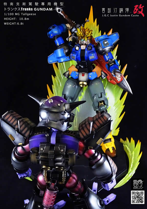 จะเป็นอย่างไรเมื่อ ตัวละครต่างๆ ในการ์ตูน Dragon Ball แปลงร่างเป็นหุ่นยนต์รบแนว Gundam พบกับโมเดลที่ปรับแต่งขึ้นเองจาก Justin Gundam Custom ซึ่งได้หยิบคาแรคเตอร์ เบจิต้า, ทรังคซ์, ฟรีเซอร์, เซลล์ และ จอมมารบู มาแปลงโฉมเป็นหุ่นยนต์ โดยตัวจอมมารบู มี บาบิดี้ นั่งควบคุมอยู่ด้วย
