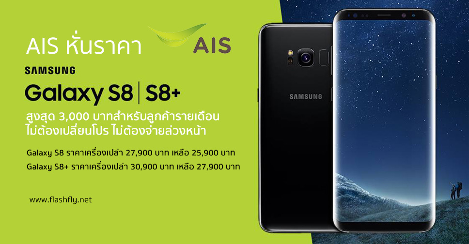ข้อตกลงรับสิทธิ์ซื้อเครื่องโทรศัพท์ Samsung Galaxy S8 และ Galaxy S8+ ราคาพิเศษสำหรับ ลูกค้าเอไอเอส รายเดือน ที่มี แพ็คเกจหลักตั้งแต่ 488 บาท/เดือน ขึ้นไป โดยเป็นการซื้อเครื่องเปล่าราคาพิเศษ แบบผูกสัญญา 12 เดือน โดยมีรายละเอียด ดังนี้