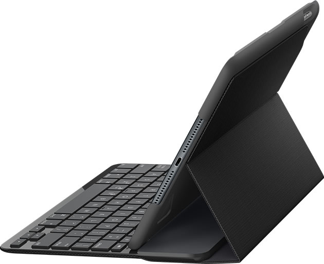 Logitech Slim Folio สามารถพิมพ์งานได้สะดวกไม่ว่าจะวางบนโต๊ะหรือบนตัก เนื่องจาก Stand ถูกปรับเอียงในตำแหน่งที่เหมาะสม อีกทั้งตัวเคสยังมีความบางเบา ป้องรอยขีดข่วนและแรงกระแทก เนื้อผ้าทนรอยเปื้อนตามมาตรฐานอุตสาหกรรมกระเป๋าเดินทาง
