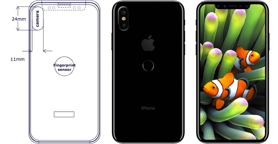 ก่อนหน้านี้มีข่าวลือว่า Apple พยายามจะฝัง Touch ID รวมไว้กับจอแสดงผล ที่ออกแบบใหม่ในดีไซน์ไร้ขอบจอ แต่ยังติดปัญหาด้านเทคนิค อย่างไรก็ตาม Touch ID จำเป็นต้องมีไว้เพื่อความปลอดภัยสำหรับใช้บริการชำระเงิน จึงตัดสินใจติดตั้งไว้ที่ด้านหลัง และเพื่อความสะดวกในการปลดล็อค iPhone อาจมีการเพิ่มระบบจดจำใบหน้า และ 3D sensing มาให้ด้วย