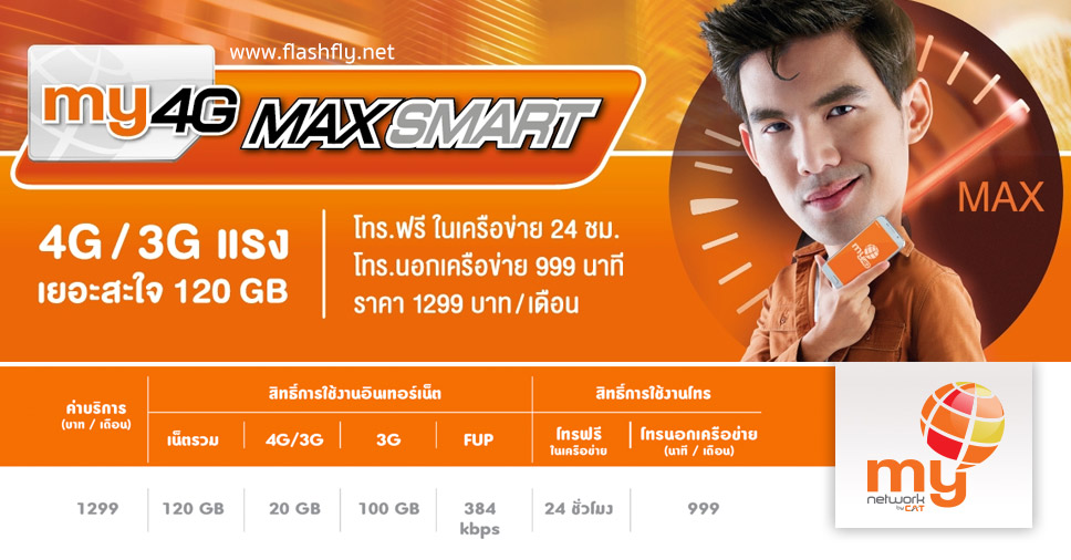เริ่มกันจากแพ็กเกจรายเดือน my 4G Max Smart แพ็กเกจที่ได้ใช้งานกันแบบจัดเต็ม เล่นเน็ต 4G/3G ในปริมาณเยอะสะใจถึง 120GB ส่วนในเรื่องของการโทรนั้น จะสามารถโทรในเครือข่ายได้ฟรี 24 ชม. และโทร.นอกเครือข่าย 999 นาที แพ็กเกจนี้จะมีราคาอยู่ที่ 1,299 บาทต่อเดือน เหมาะสำหรับใครที่ต้องการใช้เน็ตได้แบบเหลือเฟือ เพราะปริมาณ 120GB ต่อเดือนนั้น ถือได้ว่าเป็นปริมาณที่มากเลยทีเดียวสำหรับการใช้งานผ่านทางสมาร์ทโฟน ทำให้สามารถเล่นเน็ตได้แบบไม่ต้องกลัวเปลืองกันเลยทีเดียว ไม่ว่าจะเป็นคอนเทนต์แบบมีประโยชน์ ให้ความบันเทิง หรือขำๆไร้สาระก็สามารถดูได้แบบไม่ต้องคิดมากกันอีกแล้ว