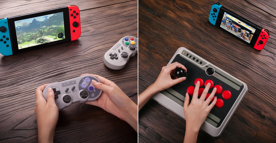 ผู้ผลิตอุปกรณ์เสริม 8Bitdo เปิดตัวผลิตภัณฑ์ใหม่สำหรับ Nintendo Switch พร้อมกัน 3 รุ่น ที่งาน E3 2017 โดยมีโทรลเลอร์ 2 รุ่น กับลำโพงไร้สาย และทั้งหมดได้รับการออกแบบมาในแนวเรโทรตามความถนัดของ 8Bitdo