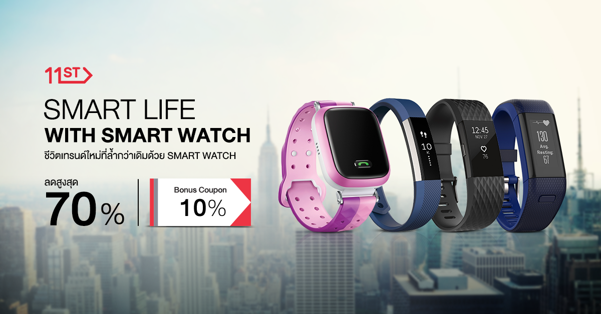 ด้วยกระแสความนิยมของสมาร์ทวอทช์ในช่วงนี้ 11street ออนไลน์มาร์เก็ตเพลสอันดับหนึ่งจากเกาหลี จึงจัดโปรโมชั่น “Smart Life with Smartwatch” ลดราคาสมาร์ทวอทช์หลากหลายแบรนด์ยอดฮิต ลดสูงถึง 70% โดยมีราคาเริ่มต้นเพียง 298 บาท พร้อมรับคูปองส่วนลดสินค้า 10% ลดสูงสุดถึง 1,000 บาท ให้นักช้อปสามารถเลือกซื้อได้ตั้งแต่วันนี้ – 30 มิถุนายน 2560