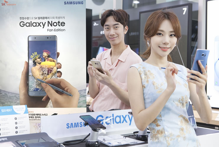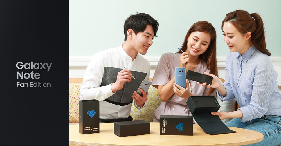 Samsung เริ่มวางจำหน่ายสมาร์ทโฟน Galaxy Note Fan Edition ให้กับลูกค้าในเกาหลีใต้แล้ว ตั้งแต่วันนี้เป็นต้นไป (7 กรกฎาคม 2017) โดยผลิตออกมาจำกัดจำนวน 400,000 เครื่อง มีให้เลือก 4 สี ได้แก่ Blue Coral, Gold Platinum, Silver Titanium และ Black Onyx จึงคาดว่าจะผลิตออกมา สีละ 100,000 เครื่อง