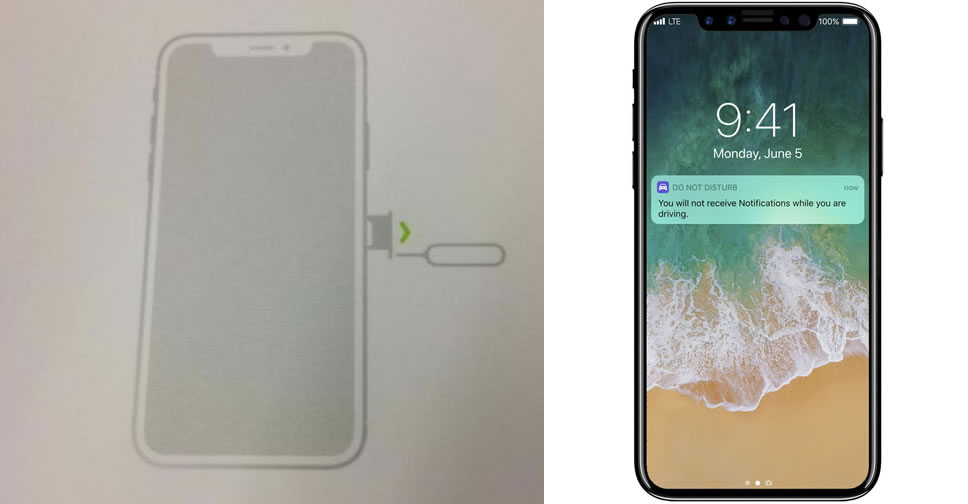 Slashleaks เว็บไซต์ที่เน้นปล่อยภาพหลุด ได้แชร์รูปภาพแผ่นกระดาษที่ดูเหมือนจะแนบมาให้ในกล่อง iPhone 8 มันมีความน่าสนใจตรงที่ภาพวาดได้เผยให้เห็นดีไซน์ของ iPhone 8 โดยมีการแนะนำถึงวิธีดึงถาดใส่ซิมการ์ด ซึ่งเหมือนกับที่ Apple จัดทำไว้ให้กับ iPhone ที่วางจำหน่ายอยู่ในตลาดตอนนี้ และถ้าภาพนี้ไม่ได้ถูกทำขึ้นมาด้วย Photoshop ก็แสดงว่าช่องใส่ซิมการ์ดของ iPhone 8 ยังอยู่ด้านข้างในตำแหน่งเดียวกับ iPhone 7