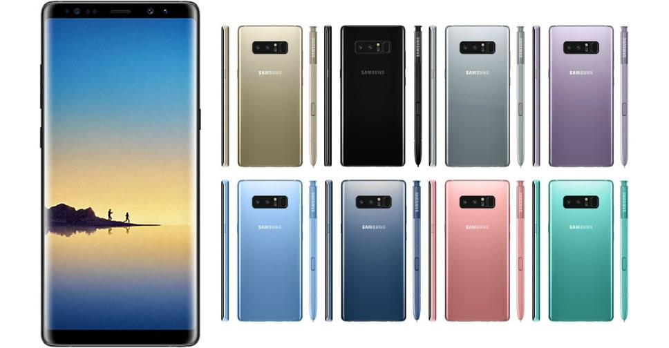 ปัจจุบัน Samsung Galaxy S8 Plus มีให้เลือก 6 สี แต่ดูเหมือน Galaxy Note 8 ที่กำลังจะเปิดตัวในวันที่ 23 สิงหาคมนี้ จะผลิตออกมาถึง 8 สี ได้แก่ Midnight Black, Gold, Arctic Silver, Orchid Gray, Coral Blue, Dark Blue, Pink และ Deep Sea Blue อย่างไรก็ตาม เคยมีข่าวลือว่า ในช่วงเริ่มต้น Galaxy Note 8 จะเปิดตัวทั้งหมด 4 สี คือ Midnight Black, Maple Gold, Orchid Grey และ Deep Sea Blue ส่วนสีสันอื่นๆ อาจจะออกตามมาในภายหลัง
