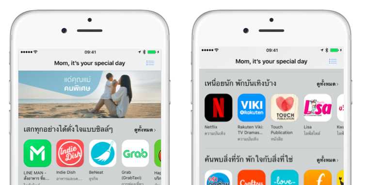 เนื่องในโอกาสวันแม่ App Store ได้แนะนำคอลเลคชั่น ‘แด่คุณแม่คนพิเศษ’ สำหรับผู้ใช้ iPhone ซึ่งได้คัดสรรแอพดีๆที่จะทำให้ คุณแม่ได้รั บความสะดวกสบายจากบริการของผู้ ช่วยคนพิเศษ ชอปปิ้งสินค้าถูกใจ เพลิดเพลินกับความบันเทิ งหลากหลาย และสนุกไปกับกิจกรรมที่ชอบ แอพในคอลเลคชั่นนี้ประกอบด้วย