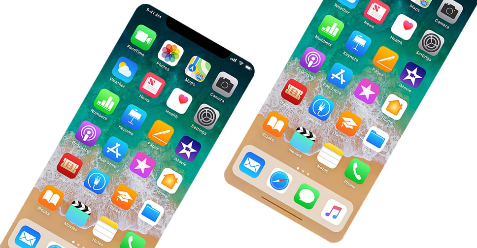 Olivier Charavel ได้สร้างแบบจำลอง User Interface บนหน้าจอโฮม เพื่อให้เห็นพื้นที่ส่วนล่างที่มีลักษณะคล้ายฟีเจอร์ Dock ของ iPad ที่รันบน iOS 11 ซึ่งทำให้การใช้งานระบบ Multi-tasking มีความสะดวกมากขึ้น ส่วนแถบสถานะด้านบน ก็ถูกแยกออกเป็น 2 ฝั่ง เนื่องจากดีไซน์ขอบจอด้านบนของ iPhone 8 มีส่วนคางที่ยื่นลงมา