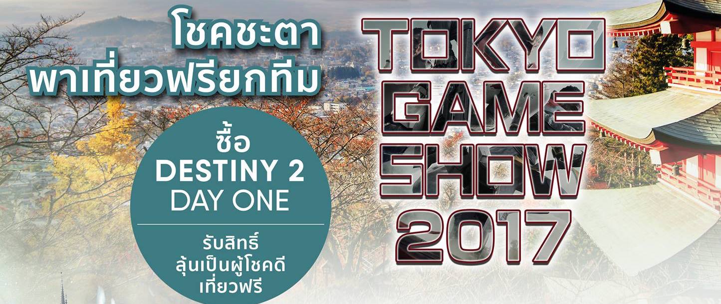 Destiny2 โชคชะตา พาเที่ยวฟรี TOKYO GAME SHOW 2017 ยกทีม แค่ Pre-order หรือ ซื้อแผ่นเกม Destiny2 ในวันที่ 6 กันยายน รับสิทธิ์ลุ้นเป็นผู้โชคดี ได้ไปเที่ยวญี่ปุ่น ตะลุยงาน โตเกียวเกมโชว์พร้อมทริปสุดเอ็กคลูซิพ สัมผัสลมหนาว ชมใบไม่้เปลี่ยนสี เที่ยวสวนสนุก แบบฟรีๆ ยกทีม พร้อมลุ้นรับของรางวัลอื่นอีกมากกว่า 100 รางวัล