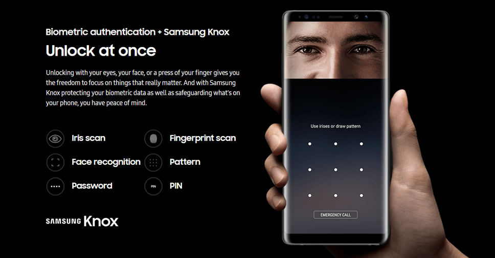 Samsung Galaxy Note 8 มาพร้อมระบบรักษาความปลอดภัยที่หลากหลาย ทั้ง Pattern, PIN, Fingerprint Scanner, Facial Recognition และ Iris Scanner อย่างไรก็ตาม ระบบรักษาความปลอดภัยที่ไว้ใจได้มากที่สุด คือ PIN หรือรหัสผ่าน เพราะก่อนหน้านี้เคยมีการทดสอบ Facial Recognition กับ Iris Scanner ของ Samsung ยังมีโอกาสถูกบุคคลอื่นปลดล็อคได้ง่าย