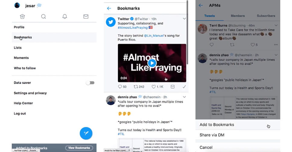 ผู้จัดการผลิตภัณฑ์ของ Twitter เปิดเผยว่ากำลังพัฒนาฟีเจอร์ใหม่ Save for Later ช่วยให้ผู้ใช้งานบุ๊คมาร์ค Tweet ที่ต้องการเก็บไว้อ่านภายหลัง พร้อมแสดงวีดีโอสาธิตการใช้งานเครื่องมือใหม่ Add to Bookmarks