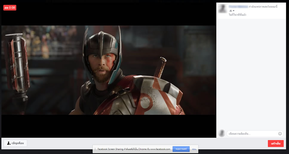 จะมีหน้าต่างแจ้งเตือนให้ติดตั้งส่วนขยาย Facebook Screen Sharing