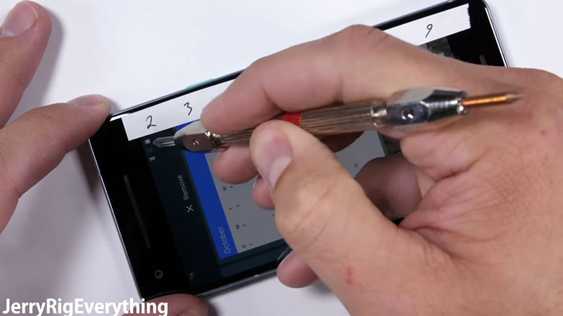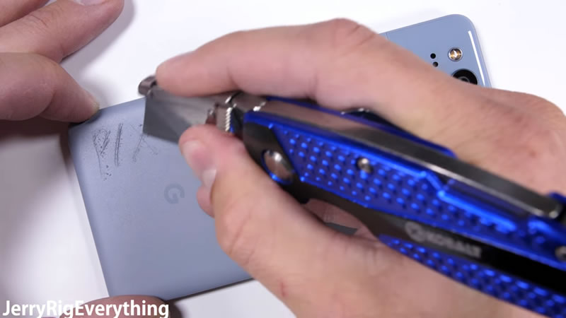 Google Pixel 2 ยังถูกมีดคมๆ กรีดไปทั่วร่าง ซึ่งวัสดุที่เคลือบผิวไม่สามารถรับมือความคมได้ แต่ในชีวิตจริงคงไม่มีใครเอามีดมาปลอกผิวสมาร์ทโฟนเล่นแน่ๆ นอกจากนี้ Pixel 2 ยังถูกไฟเผาหน้าจอ และถูกดัดให้โค้งงอด้วยมือเปล่า ซึ่งเราจะเห็นว่ามีบางจุดที่ไม่แข็งแรง และหักได้ง่าย ดังนั้น จึงไม่ควรพก Pixel 2 ไว้ในกระเป๋ากางเกงด้านหลัง เพราะถ้าเผลอนั่งทับขึ้นมา คงเกิดปัญหาใหญ่