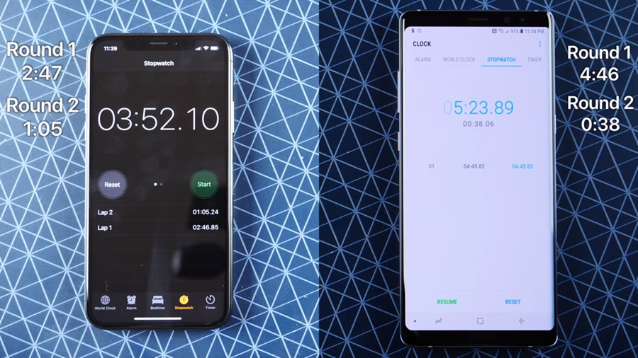 EverythingApplePro จับ iPhone X กับ Galaxy Note 8 มาเปรียบเทียบกัน เพื่อหาดูว่ารุ่นไหนจะตอบสนองการใช้งานได้เร็วกว่ากัน โดยการเปิดเกมและแอพพลิเคชั่นเดียวกันแล้วจับเวลา ก่อนจะดวลกันแบบแอพต่อแอพให้เห็นกันชัดๆ