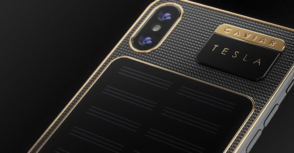 Caviar แบรนด์หรูจากรัสเซีย แนะนำ iPhone X Tesla ที่ตกแต่งด้วยทอง 24k แต่ที่พิเศษก็คือมีการติดตั้งแผงโซล่าร์เซลล์ที่ด้านหลัง และทำงานได้จริง นั่นหมายถึง Caviar ได้ทำให้ iPhone X กลายเป็น iPhone ที่สามารถชาร์จแบตเตอรี่ไร้สายอย่างแท้จริง โดยไม่ต้องวางไว้บนอุปกรณ์ชาร์จ เพราะสามารถรับพลังงานได้ทุกที่ที่มีแสงจากดวงอาทิตย์ เป็นพลังงานสะอาด และช่วยประหยัดค่าไฟ