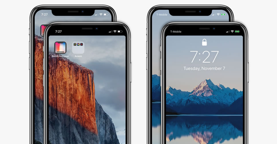 แอพพลิเคชั่น Notch Remover จาก Axiem Systems จะช่วยกำจัดรอยบากที่ขอบจอด้านบนของ iPhone X ด้วยการคาดแถบสีดำไว้ในส่วนบนของรูปภาพวอลเปเปอร์ เพื่อให้รอยบากดูกลมกลืนกับหูทั้ง 2 ข้าง