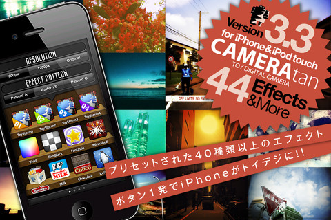 CAMERAtan แอพถ่ายรูปยอดนิยมจากประเทศญี่ปุ่น พัฒนาโดยค่าย MorokoshiMan แจกฟรีบน iPhone ถึงวันที่ 5 ก.พ. เท่านั้น โดยแอพ CAMERAtan นี้ขึ้นอันดับ 1 ในหมวด photography ในประเทศญี่ปุ่นมาแล้ว กับ 40 effects ในการถ่ายรูปสุดแนว