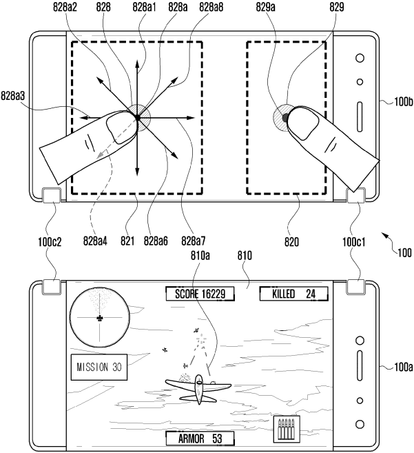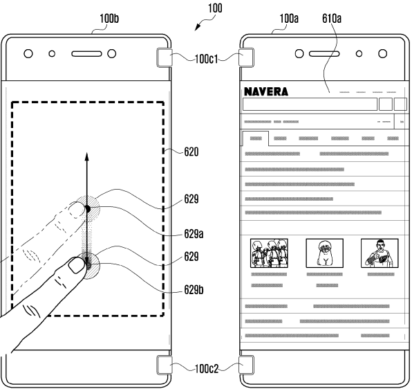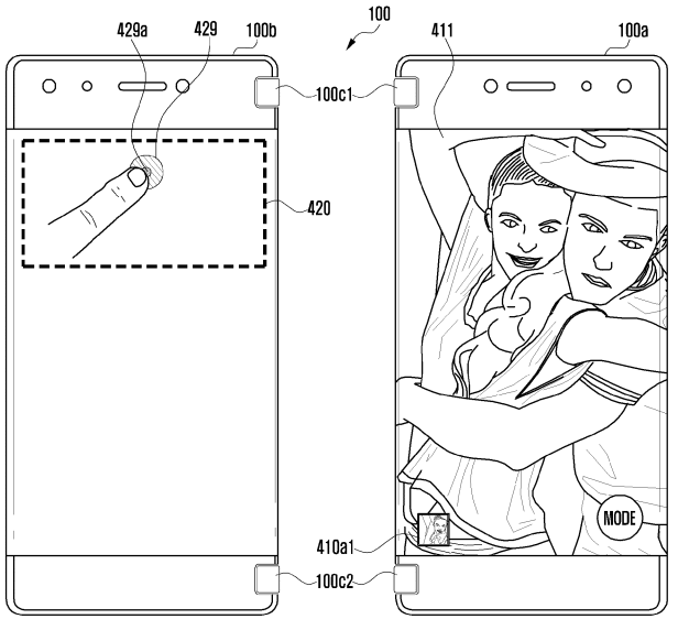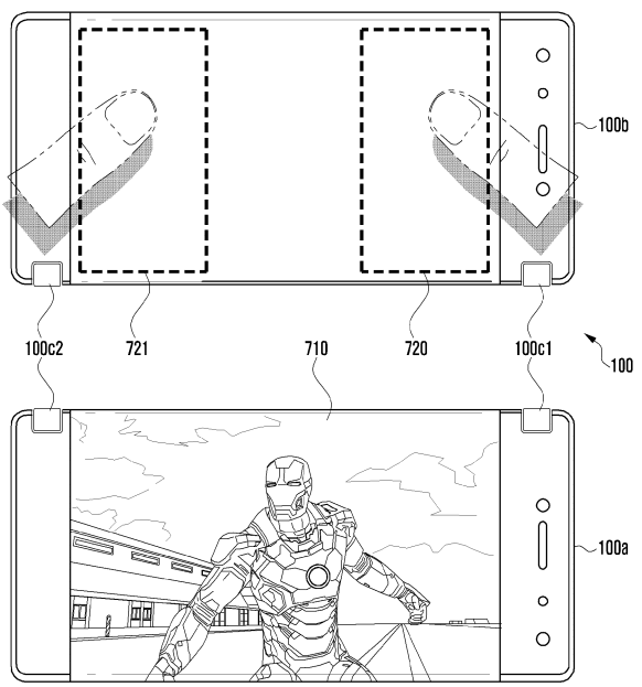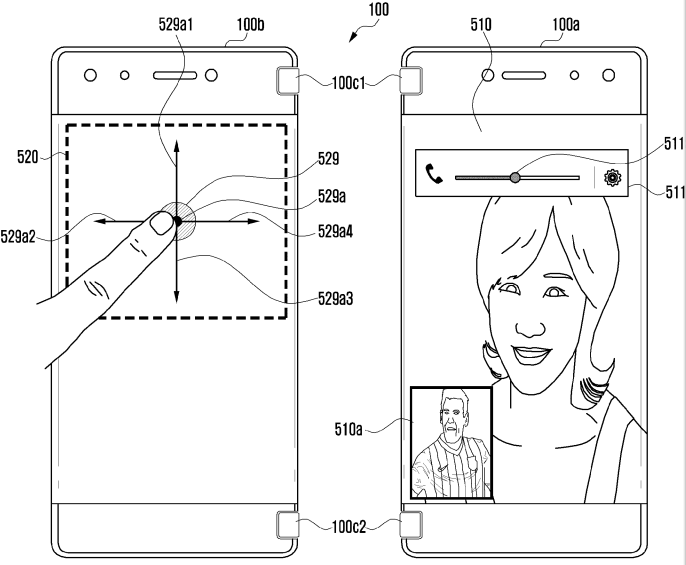 สิทธิบัตรสมาร์ทโฟนพับได้ล่าสุดของ Samsung ถูกออกแบบมาให้พับได้แบบ 50:50 เหมือน Nintendo 3DS สามารถกางออก 180 องศาเพื่อใช้งานพร้อมกัน 2 หน้าจอ และมีเซ็นเซอร์ตรวจจับการทำมุมระหว่าง 2 หน้าจอ ในกรณีที่ใช้งานเพียงหน้าจอเดียว เซ็นเซอร์จะปิดจอแสดงผลอีกด้านหนึ่ง ช่วยให้ประหยัดแบตเตอรี่