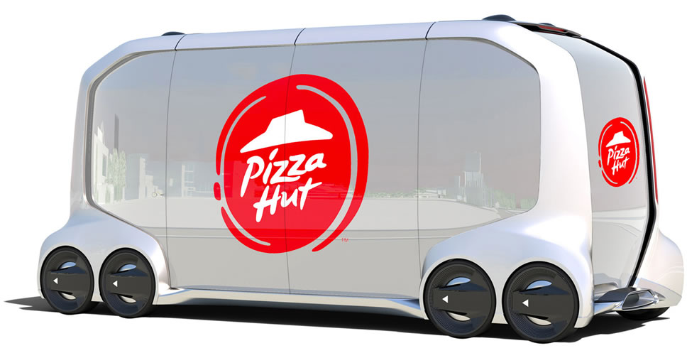 ที่งาน Consumer Electronics Show 2018 ค่ายรถยนต์ Toyota จับมือกับร้าน Pizza Hut เผยโฉมคอนเซ็ปต์คาร์ Toyota e-Palette รถยนต์พลังงานไฟฟ้าที่ขับเคลื่อนด้วยตัวเองอย่างเต็มรูปแบบ ตอบโจทย์ภาคธุรกิจที่ให้บริการเคลื่อนที่ โดยมีพันธมิตรที่ให้การสนับสนุนอย่าง Pizza Hut, Amazon, Didi, Mazda และ Uber