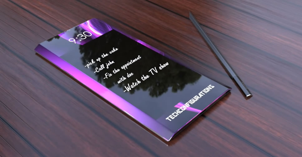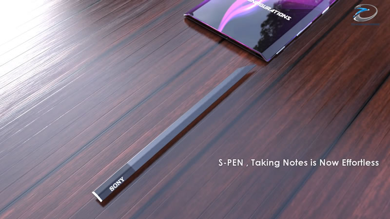 คอนเซ็ปต์ Sony Xperia Note ใช้วัสดุโลหะผสานกระจก กันน้ำและฝุ่นละอองในระดับ IP68 มากับดีไซน์ไร้กรอบ จอแสดงผล 4K OLED ขนาด 6.2 นิ้ว อัตราส่วนภาพ 18:9 ฝังเซ็นเซอร์สแกนลายนิ้วมือไว้กับจอแสดงผล และมีปากกาดิจิตอลแถมมาให้ด้วย