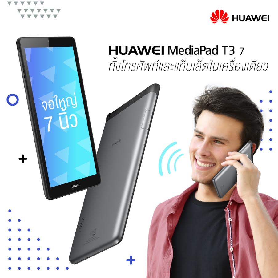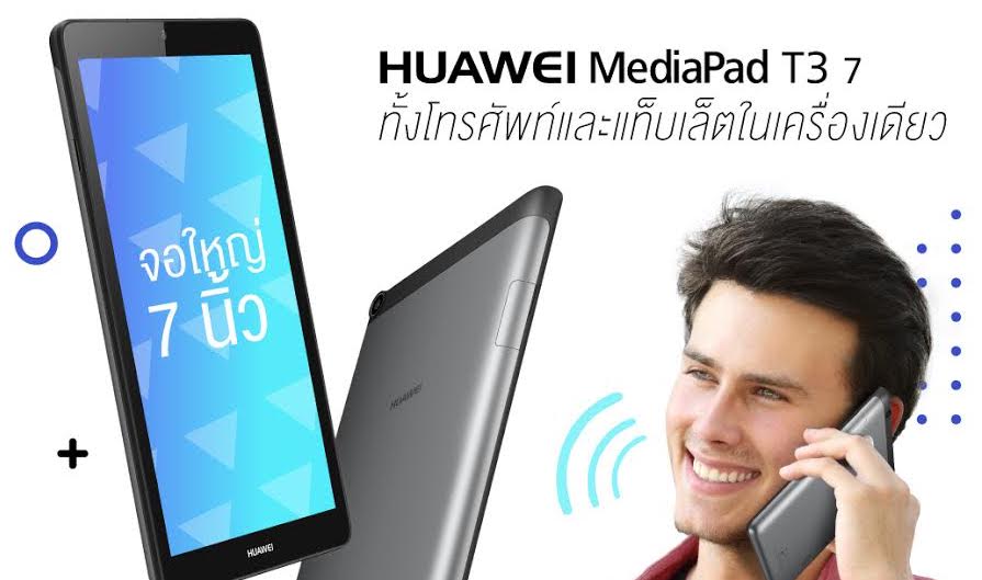 หัวเว่ย MediaPad T3 7 แฟ็บเล็ตที่เป็นทั้งโทรศัพท์และแท็บเล็ตในเครื่องเดียว มาพร้อมสี Space Gray ราคาสุดคุ้ม เพียง 3,590 ให้ทุกคนเป็นเจ้าของได้ง่าย ๆ จำหน่ายแล้ววันนี้ที่ หัวเว่ยแบรนด์ช็อป และร้านค้าตัวแทนจำหน่ายทั่วประเทศ