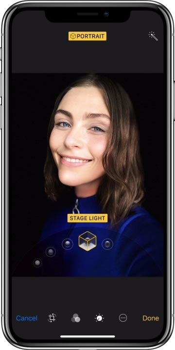 Portrait Lighting (การจัดแสงภาพถ่ายบุคคล) เป็นการผสมผสานซอฟต์แวร์ที่ซับซ้อนเข้ากับฮาร์ดแวร์ หรือ นำเอฟเฟ็กต์จัดแสดงระดับสตูดิโอมาสู่กล้อง iPhone สามารถใช้ได้กับกล้องด้านหลังของ iPhone 8 Plus แต่สำหรับ iPhone X จะรองรับ Portrait Lighting ทั้งกล้องหลังและกล้องเซลฟี่