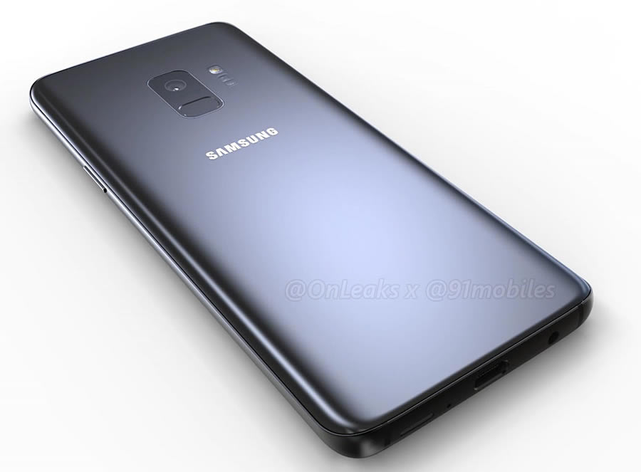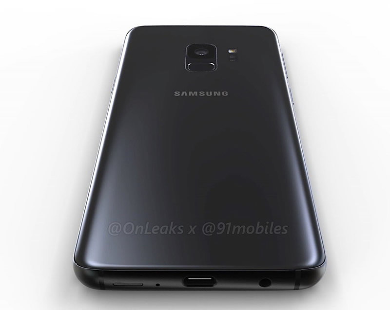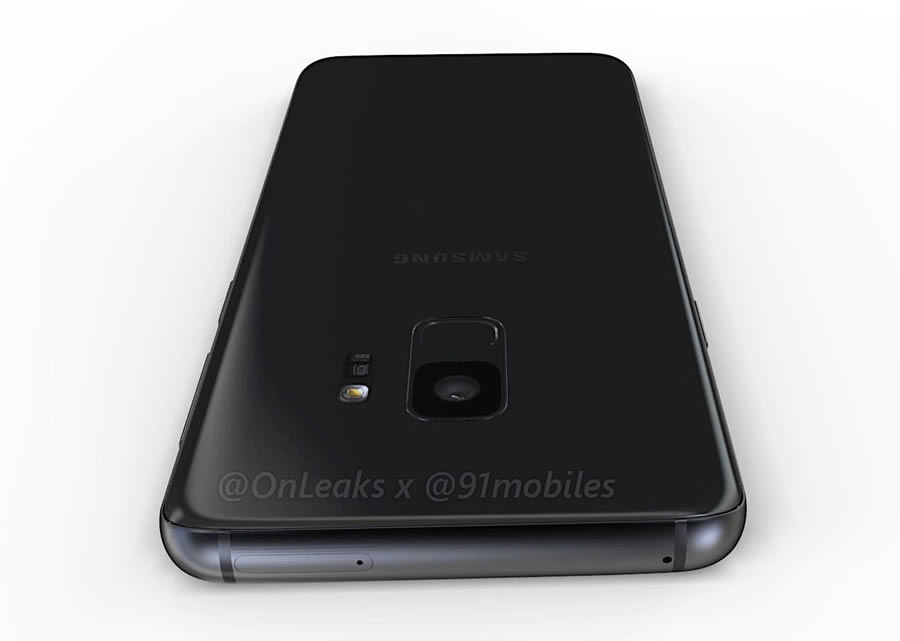 เว็บไซต์ 91mobiles ร่วมกับเจ้าของบัญชี Twitter @OnLeaks เรนเดอร์สมาร์ทโฟน Samsung Galaxy S9 ขึ้นมาด้วยโปรแกรมคอมพิวเตอร์ โดยอ้างอิงดีไซน์มาจากข่าวลือ และยังมีส่วนคล้ายกับ Galaxy S8 แต่มีการย้ายตำแหน่งเซ็นเซอร์สแกนลายนิ้วมือมาไว้ใต้เลนส์กล้อง