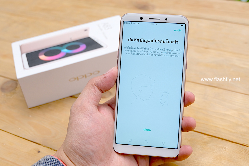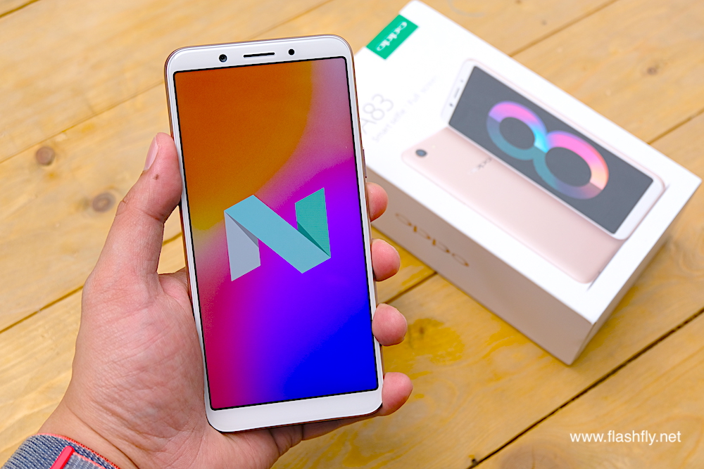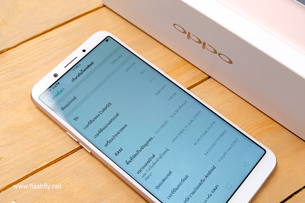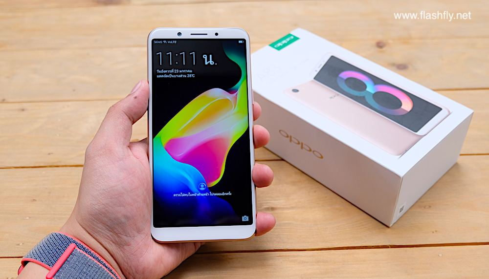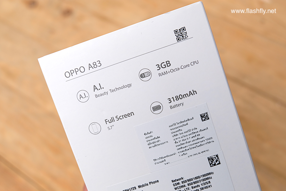ซึ่งวันนี้ทีมงาน @flashfly ก็ได้ตัวเครื่อง OPPO A83 สีทองมาเป็นที่เรียบร้อย มาเริ่มกันที่ตัวกล่องกันก่อนเช่นเคย โดยรุ่นนี้ยังคงสไตล์ของ OPPO ที่ใช้กับในหลายรุ่นก่อนหน้านั่นเองคือกล่องสีขาวตัดกับภาพตัวเครื่อง มีโลโก้ A83 สีทองเห็นเลข 8 ชัดเจน พร้อมสโลว์แกนของรุ่นนี้ Smart selfie และ Full screen ที่น่าสนใจคือรุ่นนี้เป็นรุ่นแรกที่ OPPO เลิกใช้เซ็นเซอร์สแกนนิ้วมือไปเป็นที่เรียบร้อยแล้ว เปลี่ยนมาใช้ระบบสแกนใบหน้าแทนเช่นเดียวกับที่ใช้ใน F5 Series