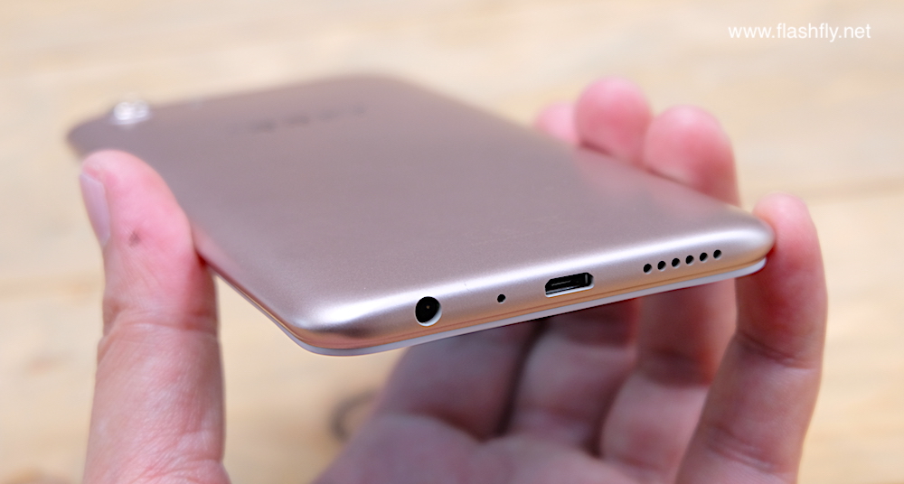 ด้านล่างจะพบกับลำโพง, ช่องต่อสาย Micro USB, ไมโครโฟน และ ช่องเสียบแจ๊คหูฟัง 3.5 มิลลิเมตร