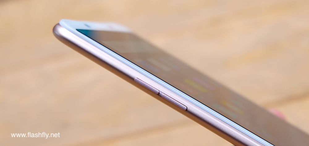 ด้านข้างมีปุ่มเพิ่มเสียงและลดเสียง โดยมีถาดใส่ซิมการ์ดติดตั้งไว้อีกฝั่งพร้อมกับปุ่มเพาเวอร์