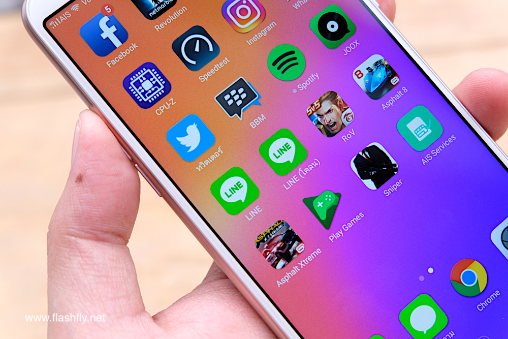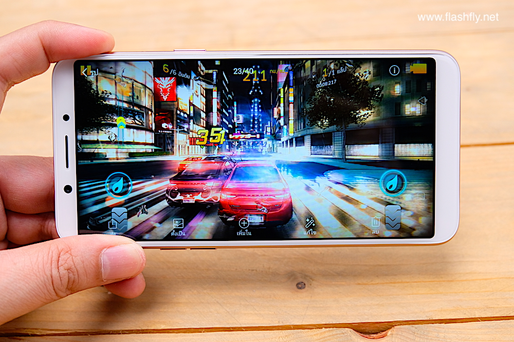 ด้วยสเปคระดับนี้ยังทำให้สามารถเล่นเกมดังๆอย่าง ROV หรือเกมรถแข่งยอดฮิต Asphalt 8 ได้อย่างลื่นไหล แถมมีโหมดป้องกันการรบกวนขณะเล่นเกมเวลามีสายเรียกเข้าจะสามารถเลือกได้ว่าจะรับสายหรือไม่ ถ้ารับก็จะสามารถพูดสายไปพร้อมกับเล่นเกมได้ทันทีเช่นเดียวกับในรุ่น F5 มาให้อีกด้วย โดยตัวเครื่องมาพร้อมแบตเตอรี่ขนาด 3,180mAh สามารถใช้งานตลอดทั้งวันได้สบายๆ