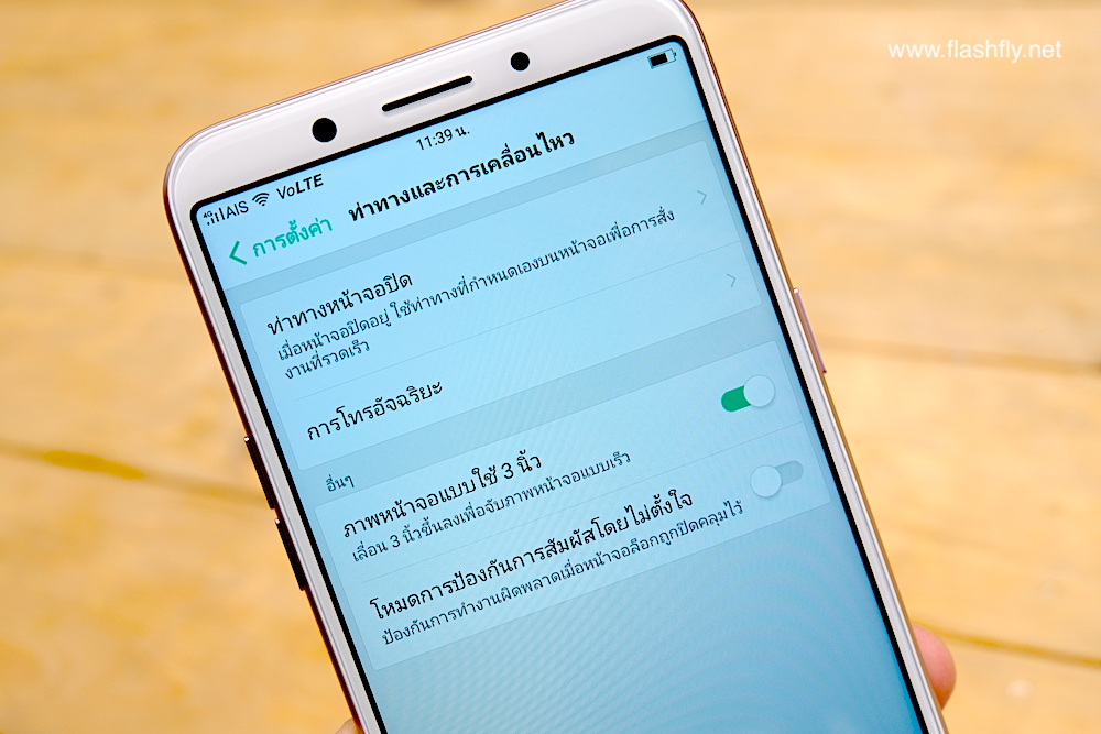 การใช้งาน Gesture ต่างๆก็มีมาให้ครบครันไม่แพ้รุ่นราคาแพงกว่าไม่ว่าจะเป็นการโทรออกหรือรับสายอัตโนมัติเมื่อวางใกล้หู การคว่ำตัวเครื่องเพื่อปิดเสียงโทรเข้า สลับจากลำโพงไปที่ลำโพงปกติเมื่อถือใกล้หู รวมไปถึงการจับภาพหน้าจอแบบรวดเร็วด้วยการเลื่อน 3 นิ้วบนหน้าจอขึ้นลงเพื่อจับภาพอย่างรวดเร็ว โหมดการป้องกัยการกดปุ่มโดยไม่ตั้งใจ