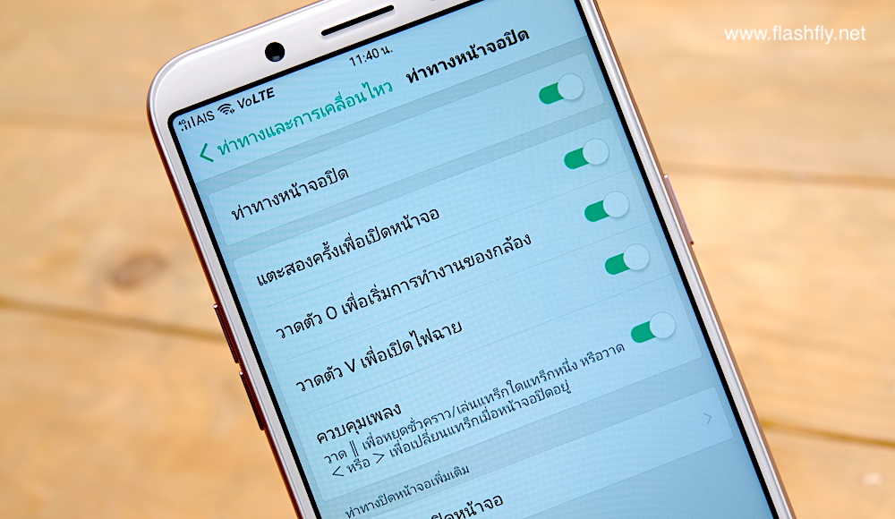 และในขณะที่หน้าจอปิดอยู่ สามารถแตะ 2 ครั้งเปิดหน้าจอได้ วาดตัว O เพื่อเปิดใช้งานกล้องทันที วาดตัว V เพื่อเปิดไฟฉาย หรือแม้ขณะฟังเพลงสามารถวาดรูป < หรือ > เพื่อเปลี่ยนเพลงขณะหน้าจอปิดอยู่ก็สามารถทำได้