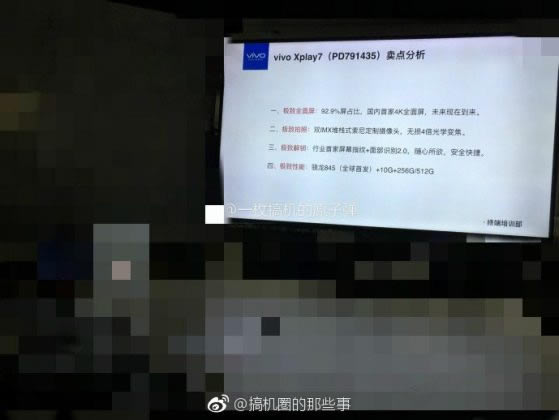 แหล่งข่าวรายงานว่า Vivo Xplay7 จะมากับชิปประมวลผล Qualcomm Snapdragon 845 ซึ่งเป็นชิปเรือธงในปีนี้ แต่ที่เหนือความคาดหมายคือ จะมากับ RAM 10GB ซึ่งตอนนี้สมาร์ทโฟนในตลาดมีความจำ RAM สูงสุดที่ 8GB และยังลือว่าความจุ ROM จะสูงถึง 256GB และ 512GB