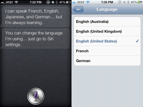 โดย ผู้ใช้ไอโฟน 4เอสที่เฝ้ารอประกาศเมื่อวันที่ผ่านมา คงได้ทราบกันแล้วว่า ตอนนี้ สิริ จะสามารถพูดภาษาญี่ปุ่นได้แล้ว โดยข่าวลือล่าสุดได้อ้าง สิรินั้น จะเข้าใจและพูดภาษาญี่ปุ่น, จีนแมนดาริน และรัสเซียได้เร็วๆนี้ในเดือนมีนาคม โดยในตอนนี้นั้น เมื่อถามสิริถึงภาษาที่สามารถพูดได้นั้น สิริจะตอบกลับมาว่า “ฉันสามารถพูดญี่ปุ่น, อังกฤษ, เยอรมัน และฝรั่งเศสได้ ฉันกำลังเรียนบางภาษาใหม่ๆด้วย” นอกจากนี้ ยังได้กล่าวเสริม “คุณสามารถเปลี่ยนภาษาที่ฉันใช้ … เพียงแค่ไปที่การตั้งค่าของสิริ”
