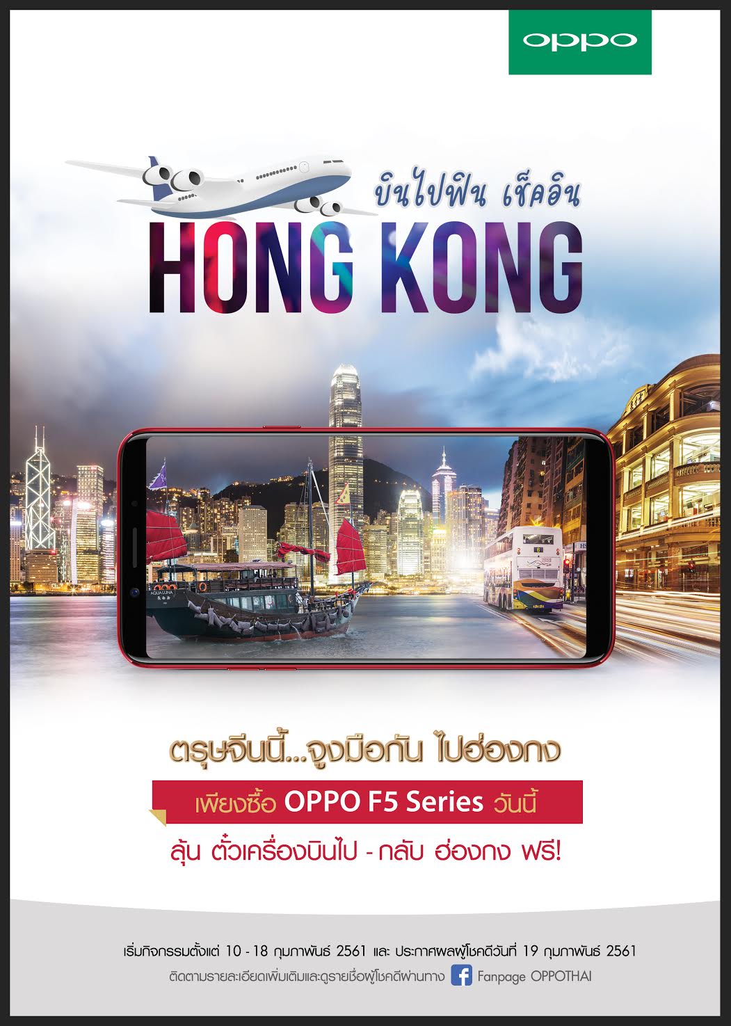 กับกิจกรรม “บินไปฟิน เช็คอิน HONG KONG” กติกาง่ายๆ เพียงคุณซื้อสมาร์ทโฟน OPPO F5 Series (F5 Youth, F5, และ F5 6GB) รุ่นใดก็ได้ ระหว่างวันที่ 10 –18 กุมภาพันธ์ 2561