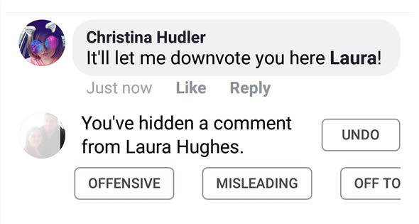 ปุ่ม Downvote จะปรากฏขึ้นมาที่ใต้ข้อความแสดงความคิดเห็น ถัดจากปุ่ม Like กับ Reply แต่ยังไม่ใช่ปุ่ม Dislike ที่หลายคนต้องการ เพราะปุ่ม Downvote ทำหน้าที่คล้ายปุ่มรายงานความคิดเห็นที่ไม่เหมาะสมมากกว่า เพราะหลังจากกดปุ่ม Downvote จะมีตัวเลือกขึ้นมาให้บ่งบอกถึงเหตุผล อย่างเช่น ก้าวร้าว หรือ ทำให้เข้าใจผิด ซึ่งสอดคล้องกับนโยบายของ Facebook ที่พยายามลดจำนวนข้อมูลที่ไม่ถูกต้อง หรือ การโฆษณาชวนเชื่อ