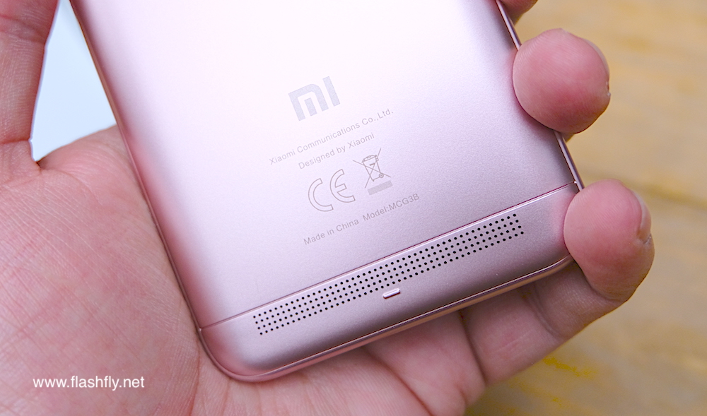 พลิกมาดูด้านหลังติดตั้งกล้องไว้ที่มุมบนซ้าย ความละเอียด 13 ล้านพิกเซล พร้อมแฟลช LED ส่วนล่างจะเป็นตะแกรงลำโพงมีโลโก้ Xiaomi ชัดเจน