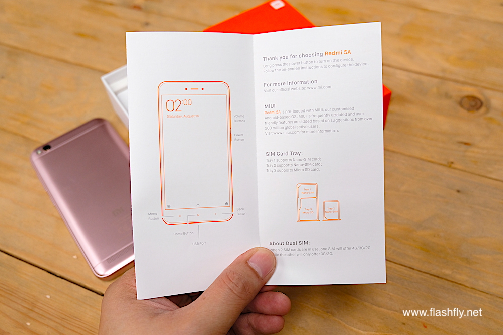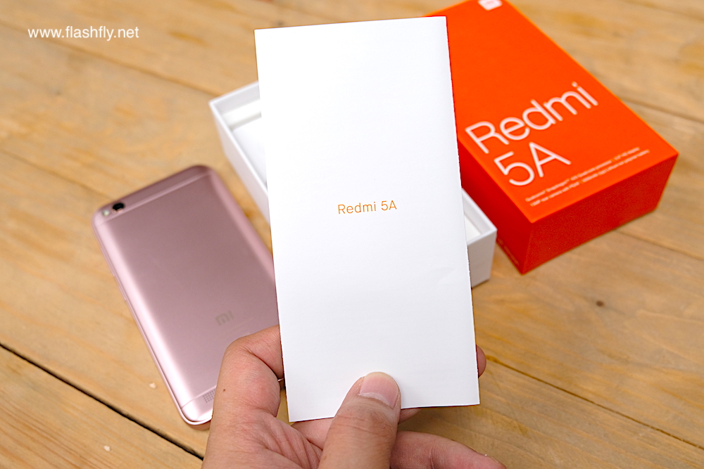 มาเริ่มกันที่แกะกล่องเป็นอย่างแรกโดย Xaiomi Redmi 5A มาพร้อมกล่องสีส้มสะดุดตา มีสเปกสำคัญบอกไว้เรียบร้อยทั้งชิปเซ็ต Snapdragon 425 จาก Qualcomm จอ 5 นิ้วความละเอียด HD กล้องดิจิตอลด้านหลังความละเอียด 13 ล้านพิกเซล พร้อมโฟกัสแบบ PDAF แบตเตอรี่ขนาด 3000mAh