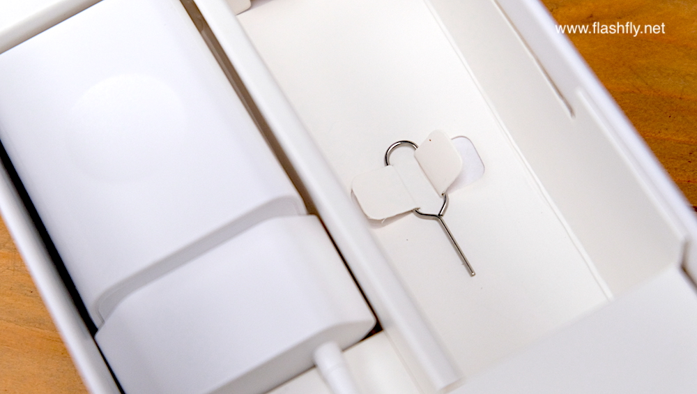สำหรับเข็มจิ้มถาดใส่ซิมจะอยู่ที่ด้านล่างในช่องสาย USB เลย บางคนอาจไม่เห็นแนะนำให้มาตรวจสอบได้ที่นี่ เสียดายที่ในกล่องไม่มีชุดหูฟังแถมมาให้ด้วย
